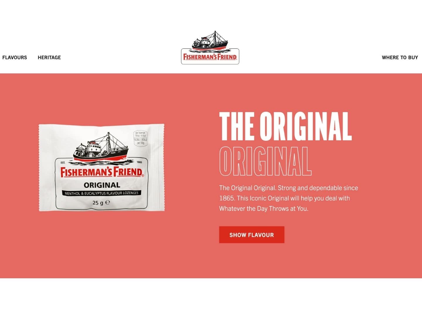 Die Menthol-Pastillen der Marke Fisherman’s Friend waren vor 166 Jahren ihrer Zeit voraus und sind heute immer noch mehr als zeitgemäß. Die imposante Geschichte und die „Freshness“ der Marke müssen daher genauso innovativ transportiert werden. Eine animierte History Section mit horizontalem Scrolling und der Einsatz diverser Storytelling-Elemente schaffen das eindrucksvoll.