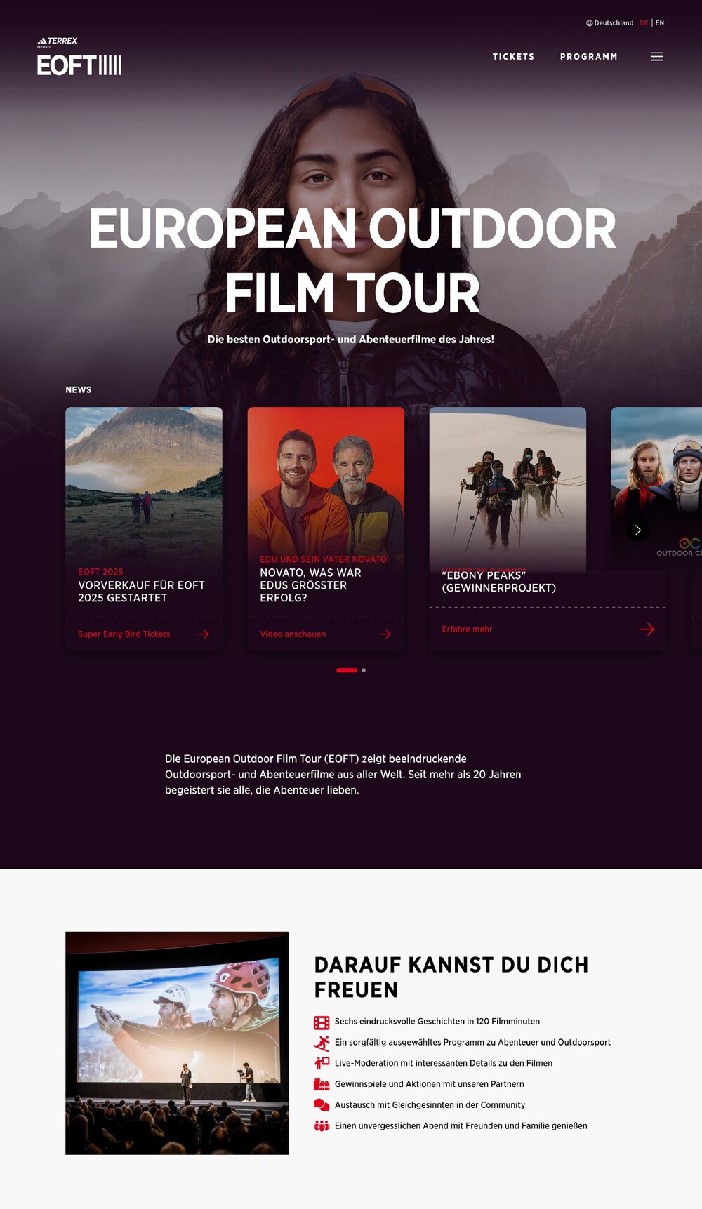 Die Filme auf den Events von Moving Adventures entführen ihr Publikum in vergessene Welten und zeigen, wie viel Inspiration da draußen steckt. Wir helfen dabei, dass der Webauftritt den bildgewaltigen Filmen gerecht wird.
