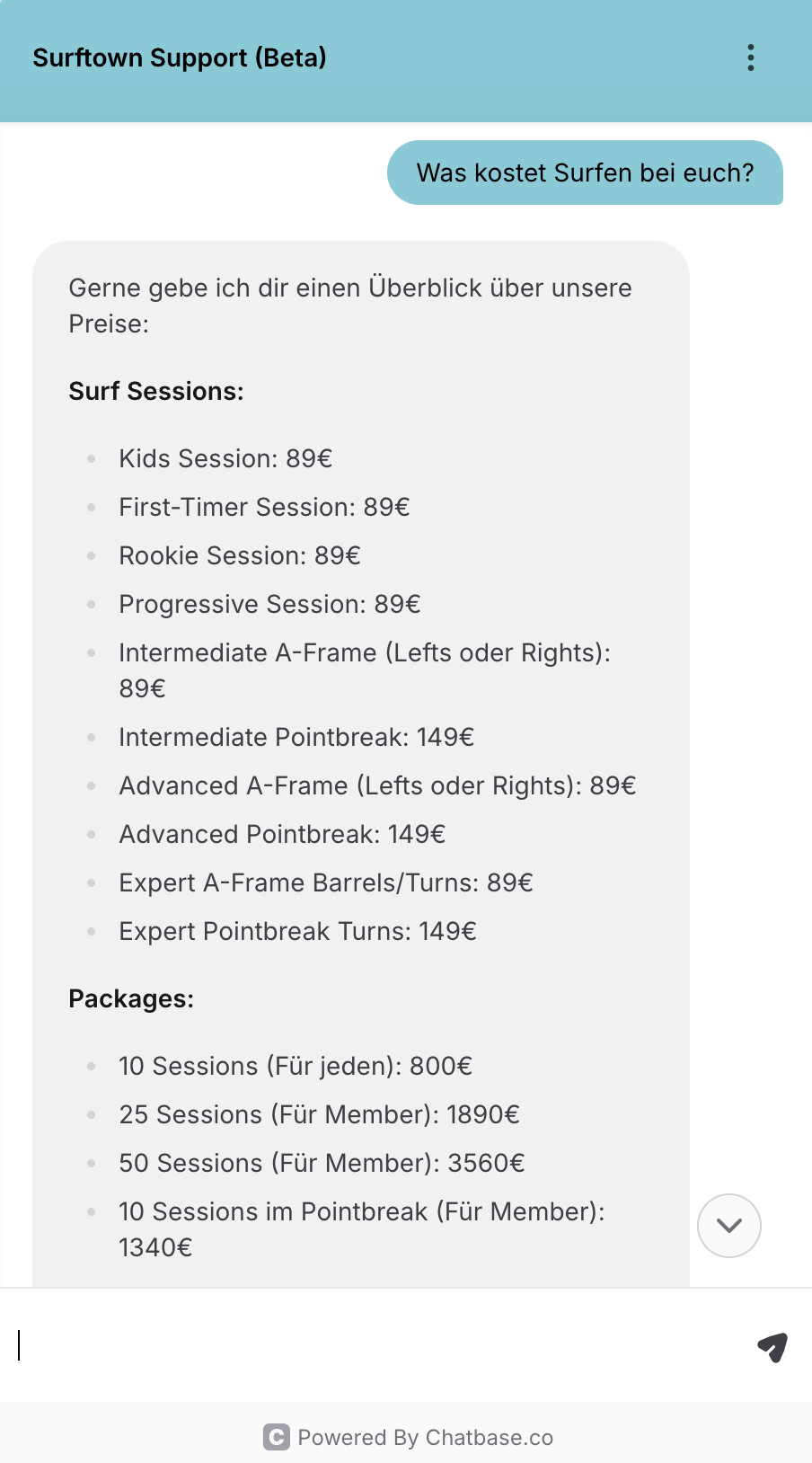 Die existerende Support-Software hatte einen Chatbot eingebaut. Leider gab der ständig falsche Antworten. Daher haben wir andere Bots evaluiert und Chatbase ausgewählt.