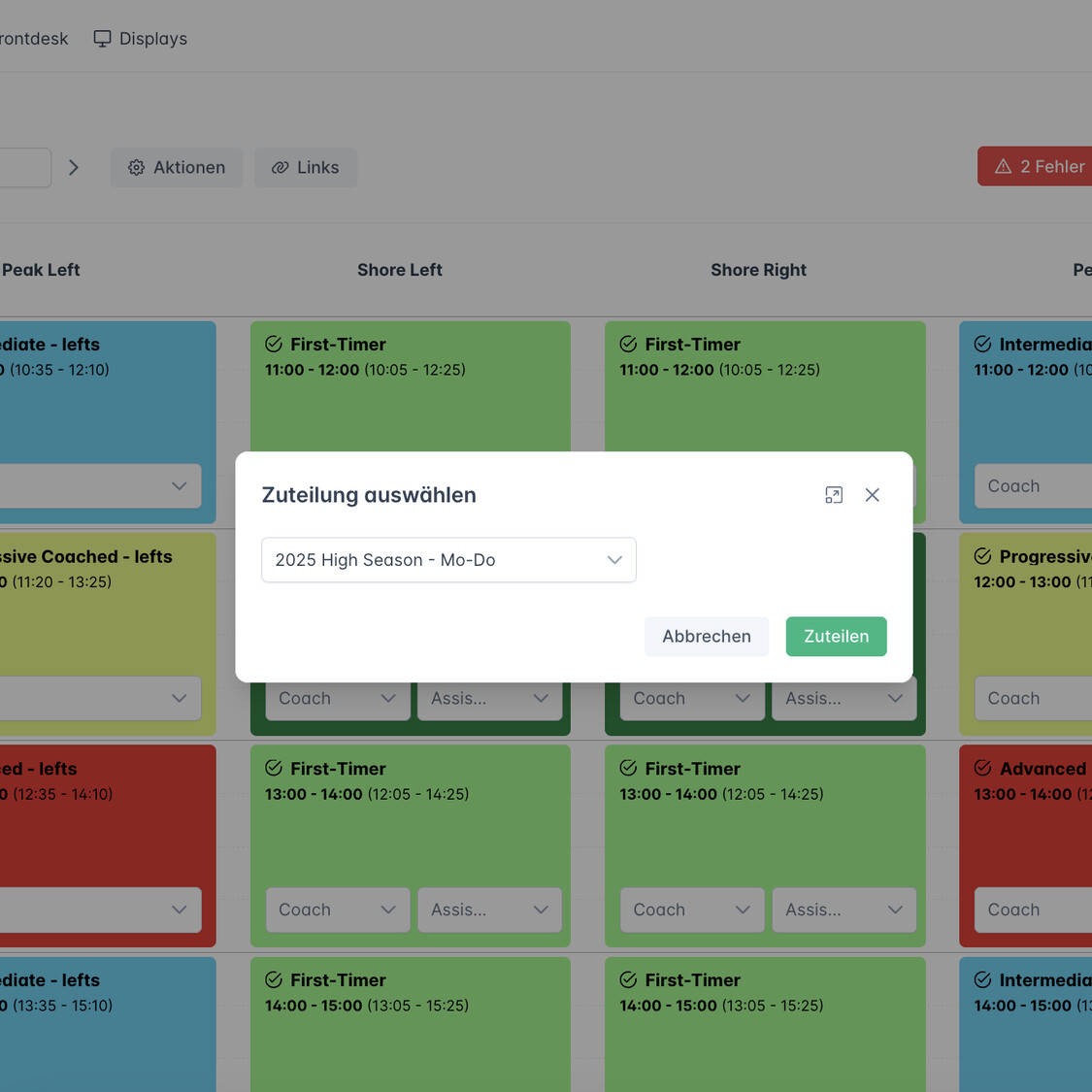 Dutzende Surf Coaches auf der Fläche koordinieren – Wann geben sie wo welche Session?
